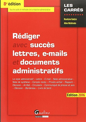 Rédiger avec succès lettres, e-mails et documents administratifs (8e éd. 2016) est une synthèse rigoureuse, pratique et à jour de l ensemble des connaissances que le lecteur doit avoir. 24 Chapitres.